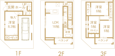 木造3階建て 4LDK+ガレージ1台